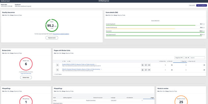 Siteimprove is software that crawls your site to discover any quality assurance issues or recommendations for improvement.