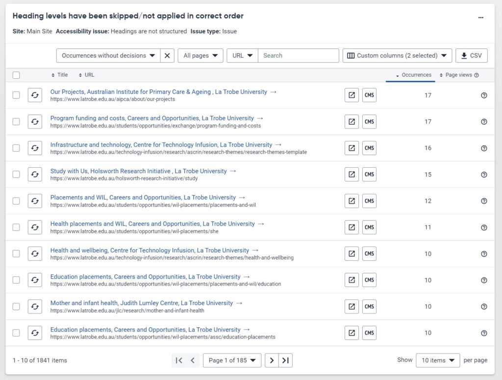 The information in this report may seem alarming at first, but don’t fret — Siteimprove is your friend, it’s here to help you identify issues that a human eye wouldn’t always pick up.